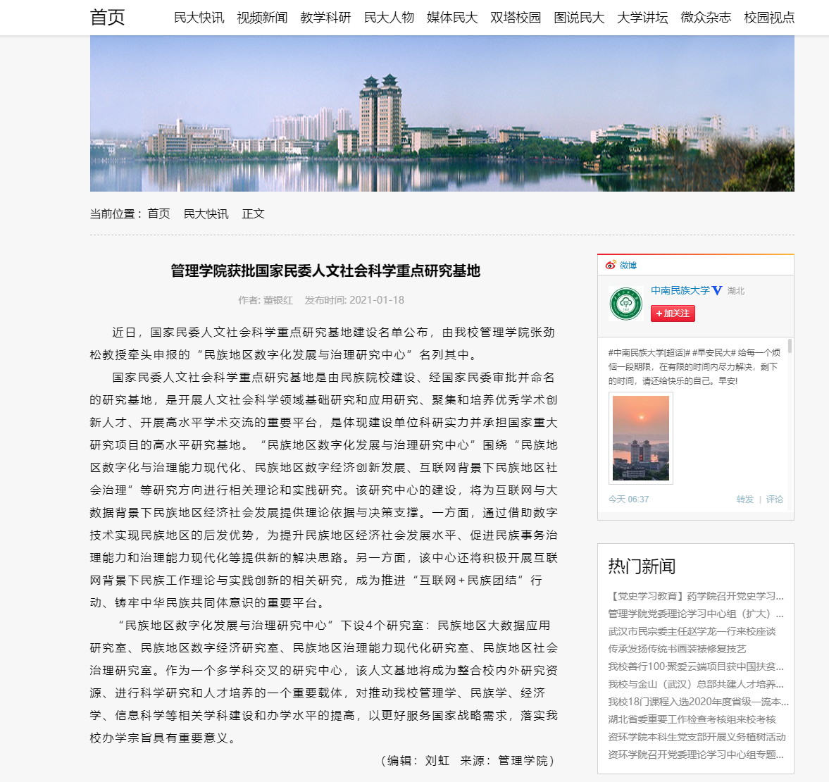 近日,国家民委人文社会科学重点研究基地建设名单公布,由管理学院张劲松教授牵头申报的“民族地区数字化发展与治理研究中心”名列其中。