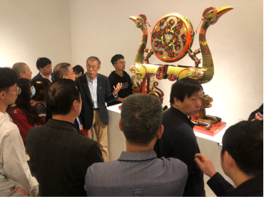 刘比建大师展览现场讲解楚漆乐器“虎座鸟架鼓”