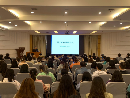 接着,万全文研究员从荆楚文化的核心——楚文化出发,对于楚文化的概念、要素、精神特质等进行了详细的介绍,为现场的同学们展示了许多考古发现的文物照片,其中包括铸客鼎、长沙子弹库帛书、鄂君启节、越王勾践剑、曾侯乙编钟等等,听万书记讲述这些文物背后的故事,同学们仿佛置身于那个时代,感受历史长河的洗礼。