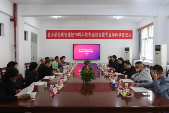 10月30日中午12:30分,美术学院于12A-110会议室开展庆祝建校70周年校友座谈会暨专业导师聘任仪式。美术学院党委书记刘子元、院长吴海广、副书记张雯君、副院长彭阳陵、副院长程超、副院长潘俊,以及教师代表王志勇、夏晋、成彪参加会议。