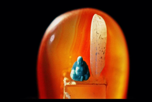 只有三分之一米粒大的  微雕作品《弥勒佛》