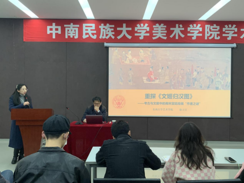 12月13日下午14:00,美术学院、民族美术实验教学示范中心特邀东南大学徐习文教授在美术报告厅举办:重探《文姬归汉图》——考古与文献中的南宋宫廷绘画“作者之谜”学术讲座。此次讲座由徐习文教授主讲,美术学院院长吴海广致感谢辞,美术学教师蔡青担任学术主持,美术学院党委书记刘子元、副院长彭阳陵等多名老师出席讲座,美术学院各专业的学生踊跃参加。