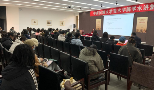 2021年12月14日上午10点,湖北省非物质文化遗产保护中心办公室副主任程琛、湖北美术学院陈日红教授、湖北文化遗产研究保护会副会长陈静一行来beat365官网进行湖北省非物质文化遗产文创设计比赛专题宣讲。美术学院教师及相关专业本科、研究生同学参加讲座。活动由王海涛老师主持。