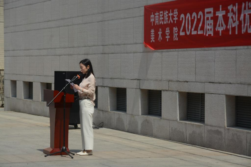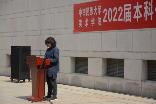 我院优秀青年教师代表熊清华也对即将开启人生新里程的美术全体毕业生们送来了衷心的祝贺和美好的祝愿,她褒奖了每一件获得优秀的作品并鼓励同学们要珍惜青春、勇于逐梦。