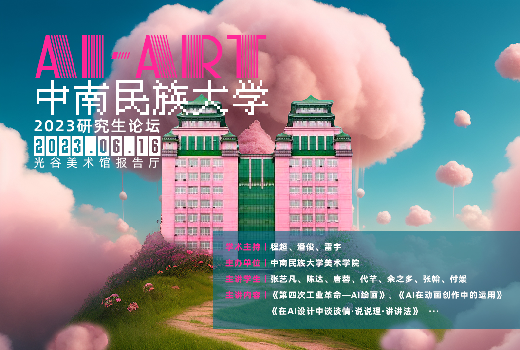2023研究生论坛主要由陈达、张艺凡、唐蓉、代芊、余之多、张翰、付媛和王丹怡同学分析了AI在绘画、视传、动画等多个领域的应用和心得。各位同学分享了多个实操案例,展现了AI技术作为一种辅助设计的手段,创造了更加多样化的想象力,可以轻松实现无限的变化和孪生设计,提高创新性、效率性和精确度。
