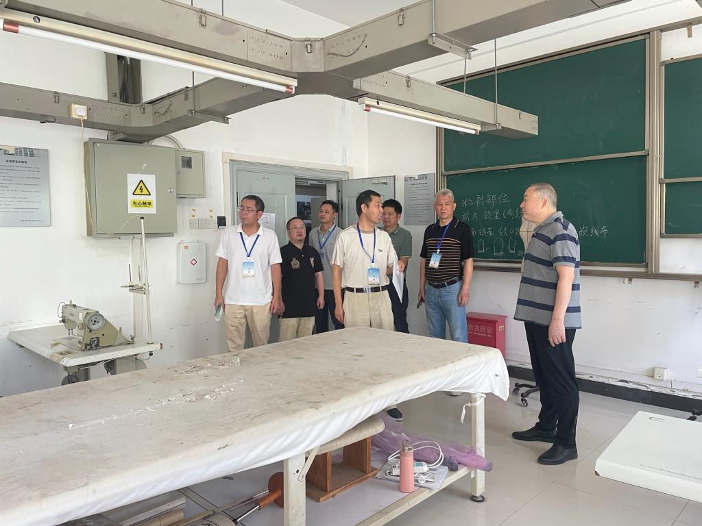 为贯彻落实《教育部办公厅关于开展教育系统重大事故隐患专项排查整治2023行动的通知》(教发厅函〔2023〕12号)、《教育部办公厅关于组织开展2023年度高等学校实验室安全检查工作的通知》(教科信厅函〔2023〕8号)等文件精神,切实杜绝实验室安全事故发生,确保学校师生员工生命财产安全,督促实验室做好安全管理工作及开学准备工作,9月1日,根据学校有关工作部署,学校国有资产与实验室管理处成立检查组,对美术学院民族美术国家级实验教学示范中心进行安全检查,美术学院院长/实验教学示范中心主任吴海广、副院长夏晋陪同检查。