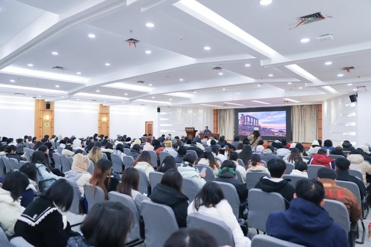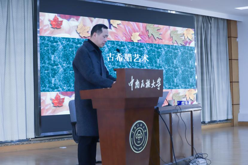 占跃海副教授在最后总结时说,丁宁教授通过一系列有趣的教学过程中发生的趣事和生动的古希腊故事,用生动幽默的语言围绕古希腊艺术为我们阐述了背后的知识点,妙趣横生,为我们带来了一场丰盛的艺术大餐,也对丁教授的到来表示感谢。