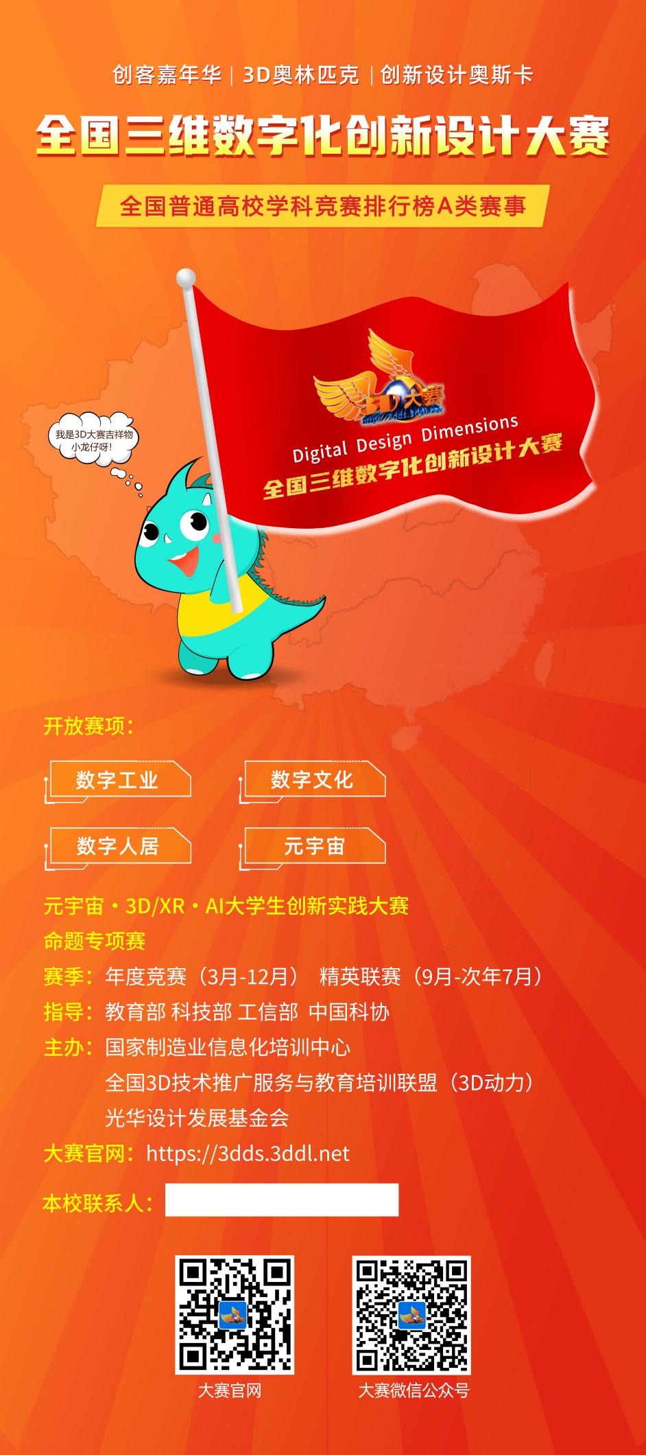 为推动数字化技术与教育的整合与创新,培养具有国际视野、创新精神和掌握数字技术的高素质人才,展示大学生创新创业成果,让更多的学生了解和参与创新创业,培养学生创新精神和实践兴趣。beat365官网将于4月2日在美术学院举办“AI创无限,3D绘未来”民族美术国家级实验教学示范中心校园美育活动暨“全国三维数字化创新设计大赛·数字科技文化节”。