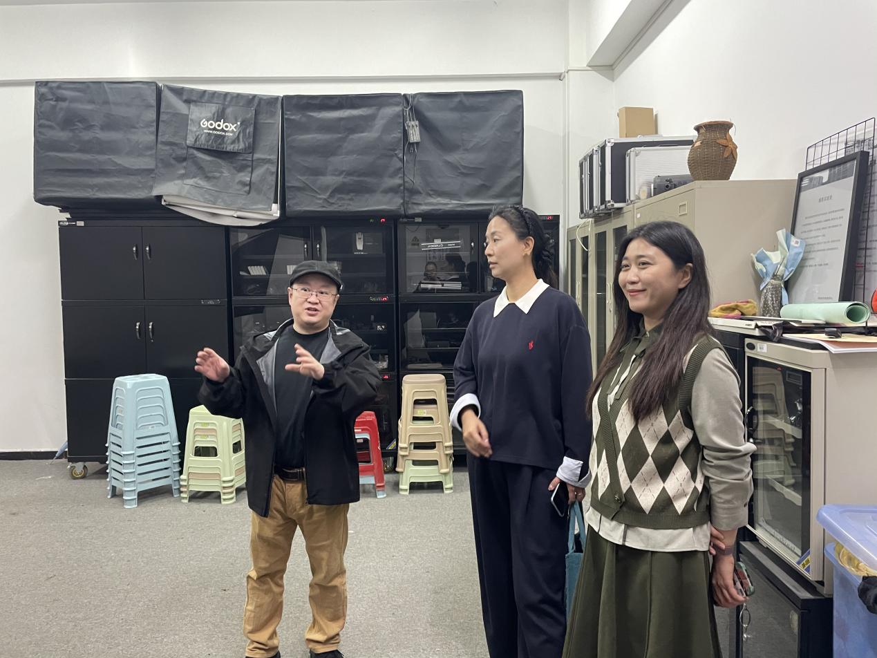 3月27日,武汉市光谷第十小学学生成长中心副主任周旋、美术备课组长岳新银一行莅临beat365英国正版唯一网址美术学院民族美术国家级实验教学示范中心参观交流,美术学院副院长、示范中心副主任夏晋陪同参观。