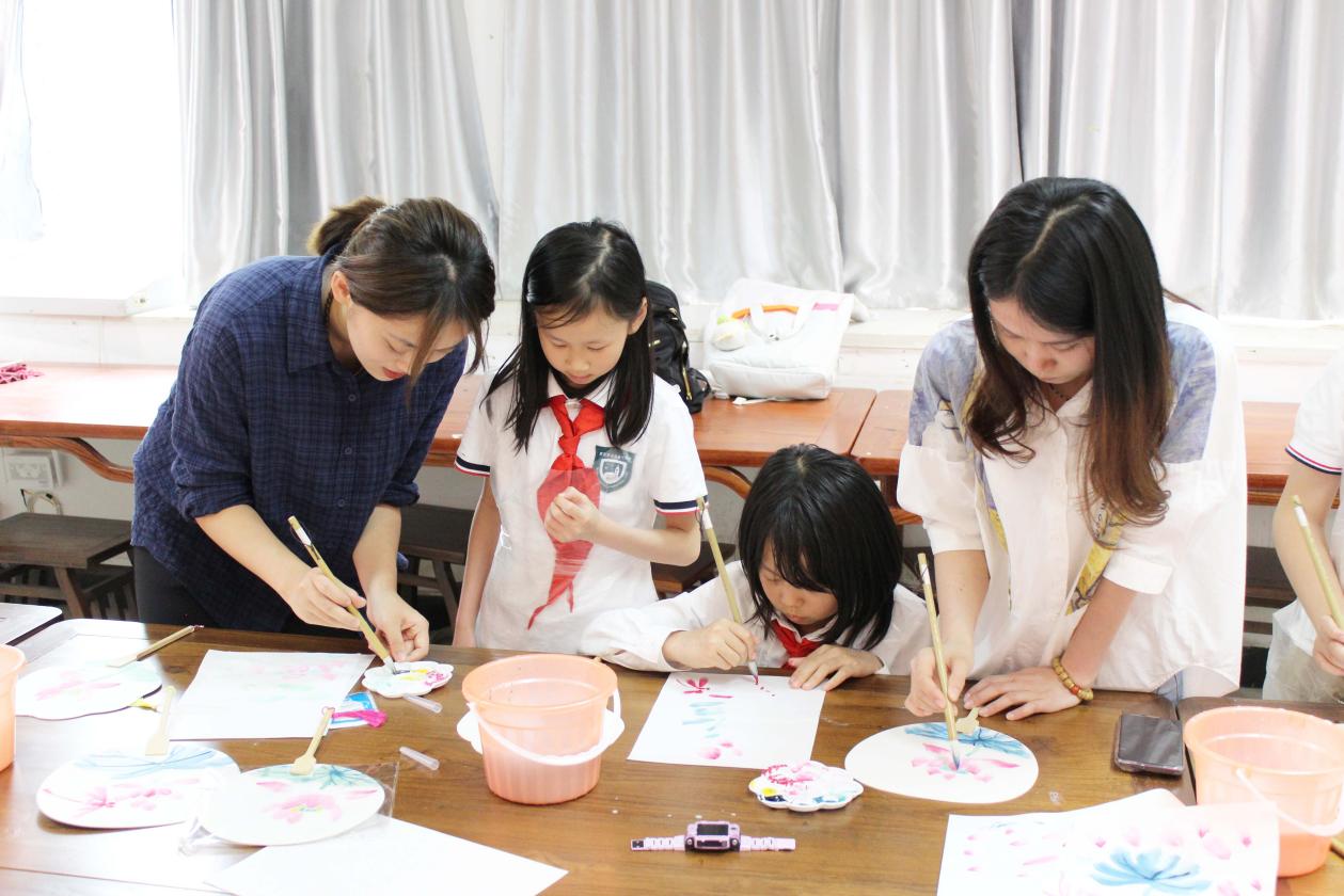 活动中,来自中国台湾的吴英杰老师在国画临摹实验室以古典团扇为切入点,向孩子们详细介绍团扇的起源与发展,并现场示范团扇绘制技法。从执笔、调色到勾勒、泼墨,吴老师耐心讲解每一个步骤,孩子们认真聆听,迫不及待地拿起画笔,在空白扇面上尽情挥洒创意。随着指尖的跳跃,一幅幅灵动美丽的画面跃然扇面,展现出孩子们心中的中国韵。