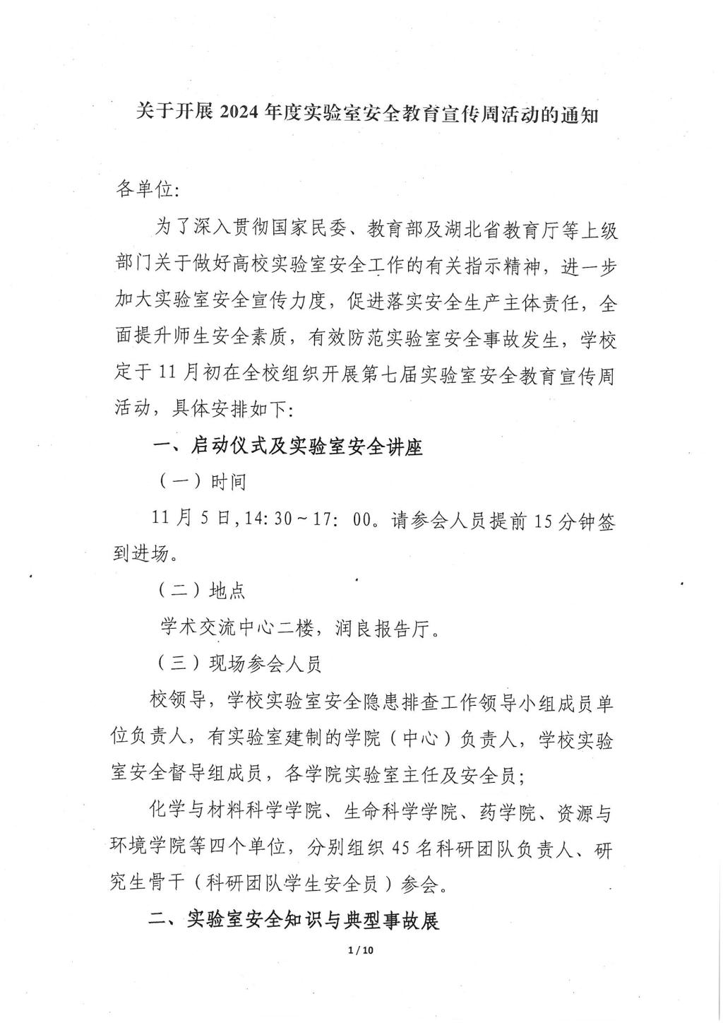 关于开展2024年度实验室安全教育宣传周活动的通知