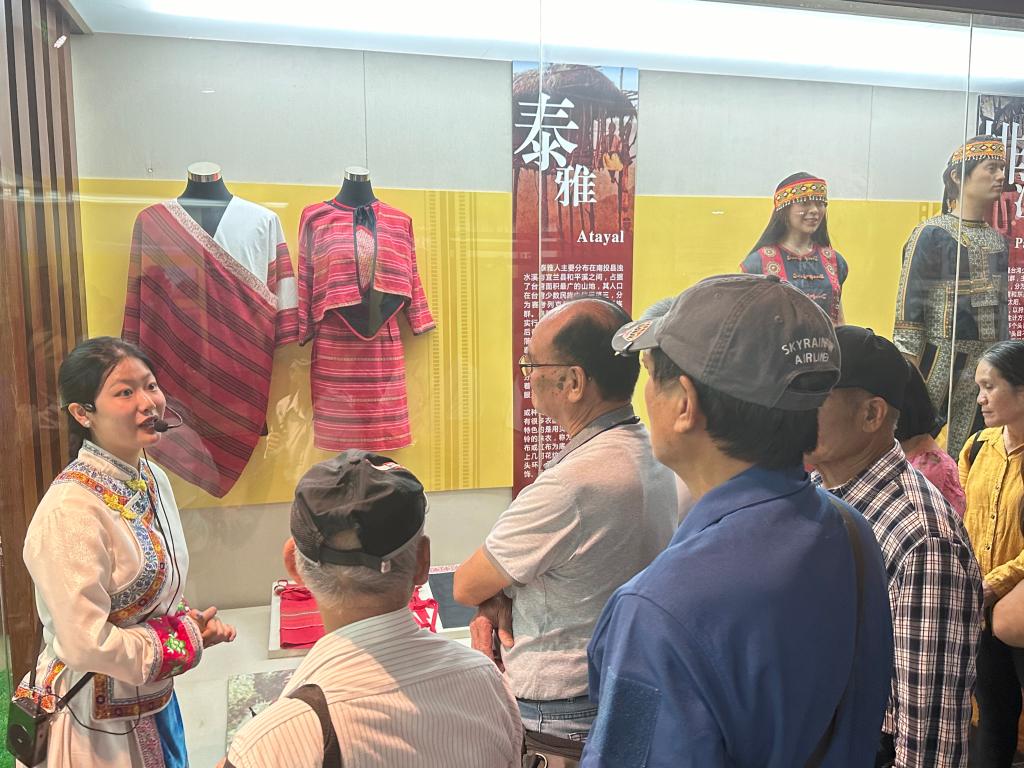 参观过程中,志愿讲解员馆内基本陈列为本,以铸牢中华民族共同体意识为主线,为交流团介绍中华民族大家庭的历史由来,以及新时期在党的领导下民族工作的开展。接着,以我馆先进数字化设施为依托,为交流团成员们介绍民族文物背后所蕴含的交流交往交融信息。在我馆第五展厅,交流团驻足观看展示台湾少数民族14个支系的28套服式。期间,交流团成员不时同讲解员互动,现场氛围热烈。