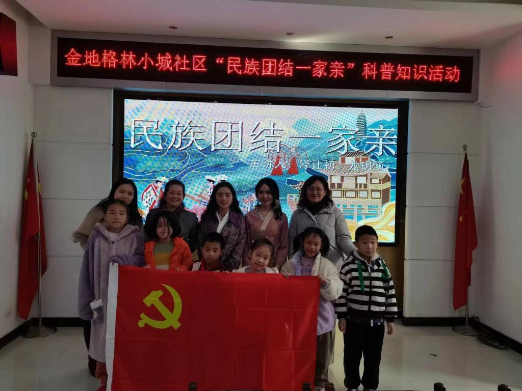 为弘扬铸牢中华民族共同体意识,传播中华民族优秀文化,促进社区里的小朋友们树立民族平等、民族团结等意识,民族学博物馆“西兰卡普”志愿服务队于2023年11月18日下午在金地格林小城社区开展了一次别开生面的民族文化分享会。