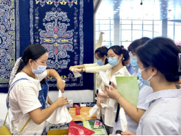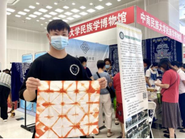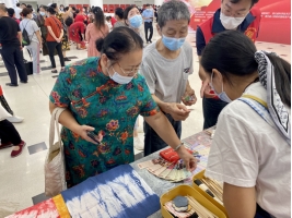 除扎染工艺品和扎染体验外,我馆还为参观游客准备了主题为“五十六个民族 五十六朵花”的56个民族定制书签。书签上印制着全国56个民族的名称、简介和民族传统服饰图片。莅临展区的游客通过抽取感兴趣的民族书签,可以了解学习相应民族的科普知识。11时30分许,在参观游客依依不舍的道别中,本次活动圆满落下帷幕。