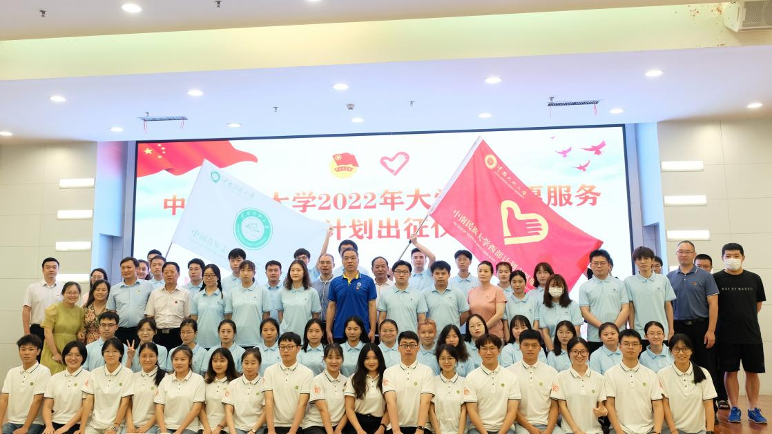 随后,宋发军为西部计划志愿服务队、研究生支教团授队旗。志愿者们庄严宣誓,表示将尽己所能,为建设团结互助、平等友爱、共同前进的美好社会奉献力量。