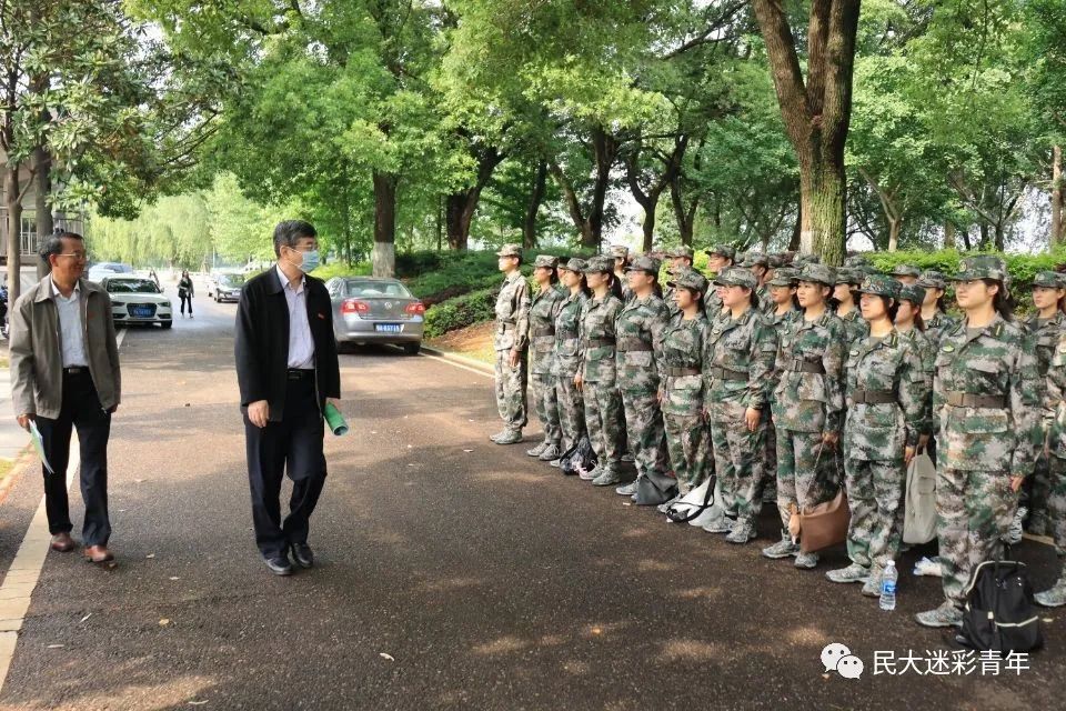 在队伍集合待命期间,学校党委边境书记和学工部(处)李川国部长,先后对团队的人员组成、训练成果等情况进行了了解,并对军训期间团队的具体任务做了安排和要求。李部长表示,迷彩青年是学校得力的助手,希望在军训期间和今后的活动中发挥更大的作用。