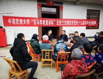 |    按照省委宣传部、省委讲师团“百马学者宣讲行动”统一安排,2019年12月30日至31日,beat365官网马克思主义学院,湖北省中特中心民大分中心成员、省委讲师团恩施理论热点面对面示范点专家阎占定、易新涛、张燚、苏咏喜、瞿晓琳等教师及四名研究生组成红色理论宣讲队参加了“湖北省百名马克思主义学者宣传十九届四中全会精神”活动,深入恩施市基层村社,以屋场会、院坝会、火盆会等形式,为广大基层党员干部群众宣讲党的十九届四中全会精神。    2019年12月30日上午,示范点专家组组长阎占定教授以《筑牢实现中华民族伟大复兴的制度保障》为题在舞阳坝街道办事处为广大党员干部全方位、多角度,深层次地分析解读了党的十九届四中全会精神,为进一步坚定制度自信,不断提升基层治理能力和治理水平,给办事处党员干部上了一堂生动的政治理论课。2019年12月30日下午、31日上午,阎占定教授分别在恩施市龙凤镇二坡村、沙地乡秋木村,以火盆会、场屋会等丰富多样的形式围绕党的十九届四中全会精神为农村干部党员以及农民群众带来了深入人心的宣讲,通过结合现实的教育、脱贫、社保、乡村振兴等,用数据和实例,生动形象、深入浅出的讲解四中全会精神,在参会人员中引起广泛的反响。