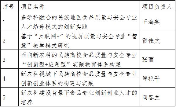 8月27日,教育部高等教育司公示了关于新农科研究与改革实践项目拟立项名单,拟对407个新农科研究与改革实践项目予以立项。我院承担的5个项目主要研究方向是新型农林人才培养改革实践,主要以涉农专业食品质量与安全为依托平台。