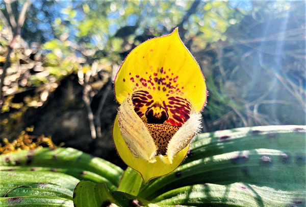 毛瓣杓兰为兰科杓兰属植物,可以称得上是植物中的大熊猫。1894年,毛瓣杓兰被法国植物学家弗兰歇命名为Cypripedium fargesii Franch.,模式标本产地为四川城口,是我国特有物种,也是国家二级保护植物。毛瓣杓兰花叶形态奇特,观赏价值极高,目前自然居群被破坏严重,野外已难觅踪迹,其生存现状被《中国物种红色名录》评定为“易危”,被世界自然保护联盟(IUCN)濒危物种红色名录评估为“濒危”(EN)。