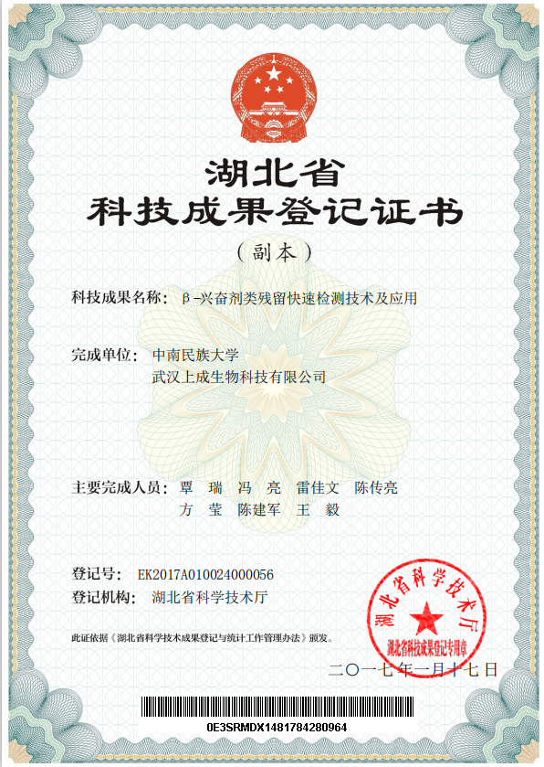 beat365英国正版唯一网址生命科学学院,自2016年起,就与武汉上成生物科技有限公司建立了良好的产学研合作关系,并共同组建了食品安全检测产学研基地。五年来,生命科学学院相关科研团队主动强化与武汉上成生物科技有限公司研发队伍的密切联系,帮助企业攻克技术难题,提升集成创新、消化吸收再创新能力,推动企业不断开发新技术、推出新产品,提高产品的性能、质量和效益,取得丰硕成果。2017年双方在瘦肉精快速检测领域的合作成果“β-兴奋剂类残留快速检测技术及应用”和“苯乙醇胺A胶体金快速检测卡产品的开发与应用”顺利通过湖北省科技成果鉴定,达到国内领先水平。