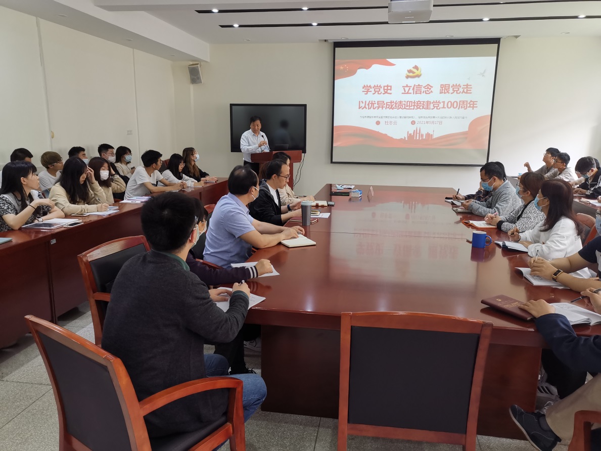 为深入贯彻习近平总书记重要讲话精神,认真落实学校党史学习教育实施方案,持续用党的伟大历程、光荣传统和优良作风教育鼓舞师生,5月17日下午,副校长杜冬云以《学党史 立信念 跟党走》为题,在学院206会议室为学院师生讲授专题党课。学院教工党员、研究生党员、本科生党员参加学习。