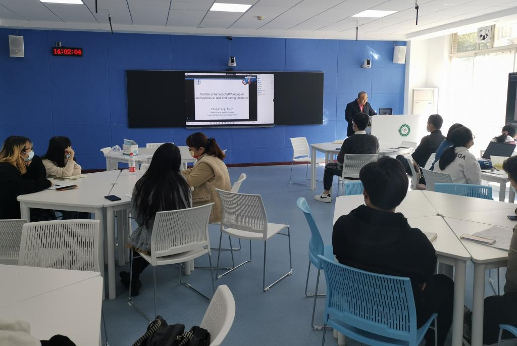 2021年11月8日下午,生命科学学院举行70周年校庆特邀学术报告。首都医科大学基础医学院张晨教授应邀与我院进行线上学术交流,并做了题为《ABHD6 enhances AMPA receptor endocytosis at rest and during plasticity》的学术报告。我院60多位师生通过线上线下方式参加学术交流和探讨。AMPA受体(AMPAR)在神经突触活动的调节中起着关键作用,反映在长时程增强作用(LTP)和长期抑制(LTD)的表达上。张晨教授的报告揭示了一个在调节AMPAR受体内吞循环方面起关键作用的ABHD6蛋白,其在调节突触可塑性和学习记忆方面发挥重要功能。