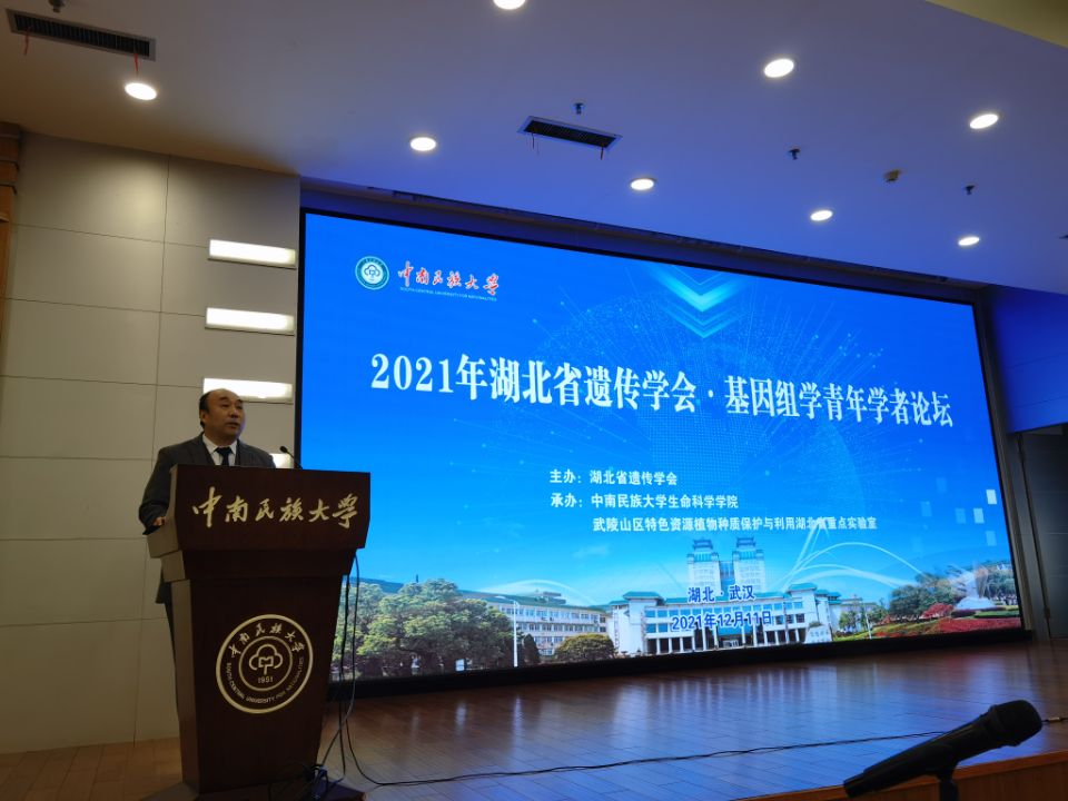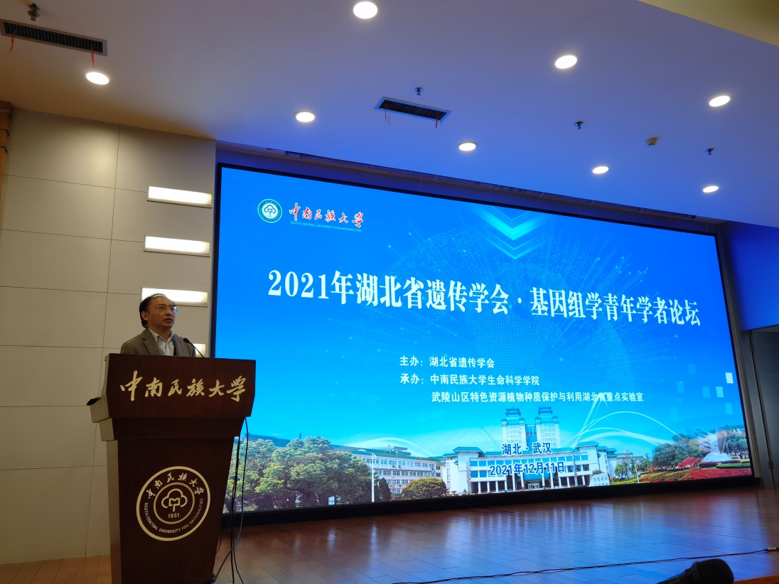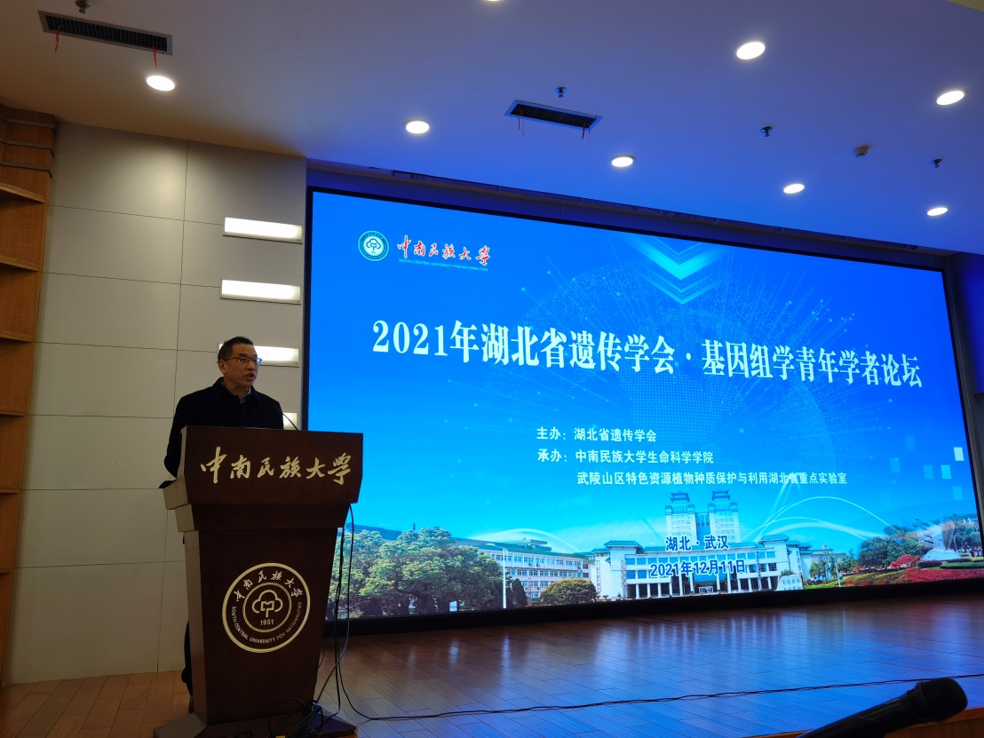 湖北省遗传学会理事长熊立仲教授致辞。他表示当前国家十分重视青年人才的培养,青年学者承担着科技振兴的重担,本次论坛为青年学者交流学习提供了好机会。