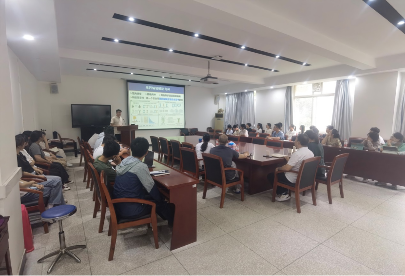 沙干博士2012-2018年就读于我院生物工程专业,完成本科和硕士阶段学习,于2023年在华中农业大学获得博士学位。沙干博士的报告重点介绍了自己近期以第一作者在Nature杂志发表的最新研究成果,该研究将人工诱变技术与全基因组测序技术相结合,克隆到水稻广谱抗病的关键调控基因RBL1,并通过基因编辑创制了兼具产量的新型水稻广谱抗病材料。会场学术气氛热烈,师生们围绕学术问题、实验技术和科研心得等多方面开展了深入的交流。沙干博士结合自身的求学历程和科研体会,对在场学生的学习生活给出了积极的建议,鼓励大家做科研需要长期坚守,积极与导师沟通交流,注重团队协作。最后,余光辉院长结合沙干博士的科研经历,向与会同学们提出了学习要求:科学成果需要时间积累,投入才是硬道理;注重最新相关文献阅读,及时了解前沿进展,特别是原文原著的阅读;加强英语的学习,注重国内外同行的交流和合作。