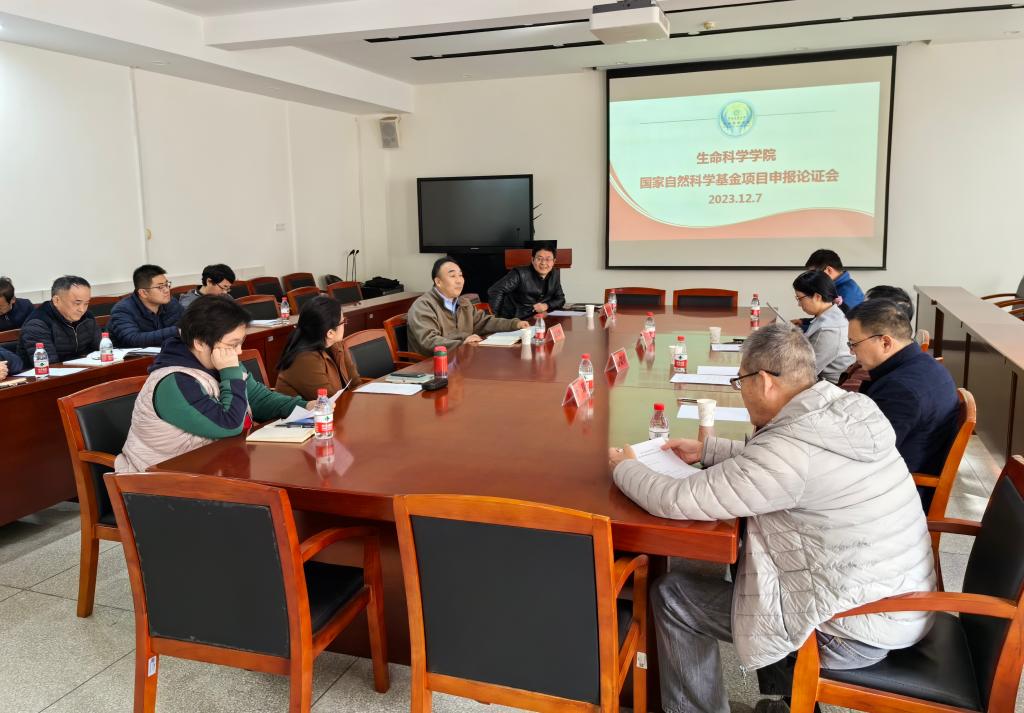 为做好我院2024年国家自然科学基金项目申报工作,提升学院项目申报质量和资助数量,2023年12月7日下午,生命科学学院在学院会议室举办了2024年国家自科基金项目申报论证会。论证会邀请了校外专家武汉大学生命科学学院孙蒙祥教授、武汉轻工大学动物科学与营养工程学院刘玉兰教授莅临指导;校内专家科学研究发展院覃瑞教授、生命科学学院余光辉教授、刘庆华教授和郭小华教授也参加了项目论证,论证会由郭小华教授主持。