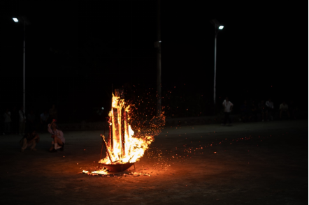 在老师们的筹划准备下,英山县的实习小组在营地中举行了令人难忘的篝火晚会活动,同学及老师们轮番上阵,展示着自己的才艺、释放着心中的热情。青春的活力随着燃烧的篝火一起,飘飞在夏日的夜空中。