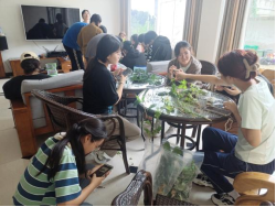 植物标本:主要分为植物采集、标本压制烘干及制成上纸三个步骤。每组同学分工合作,对采集的植物标本进行编号、修剪、舒展枝叶、放进吸水纸中,再用标本夹压制,使植物脱水干燥成形,直到植株和枝叶干燥成型。每名同学挑选一种植物再固定到白色台纸,并粘贴植物详细信息的标签。在完成作业的制作任务后,可以再选择制作一份植物标本作为纪念。