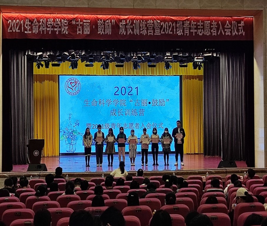 为了进一步增强同学们对志愿服务的了解,提高大家参加志愿活动的积极性,将志愿服务''奉献、友爱、团结、互助''的宗旨贯彻落实到生活中,让志愿精神服务社会,10月23日上午,生科学院在学术会堂举行了''古丽·鼓励''成长训练营暨2021级青年志愿者入会仪式。学院党委副书记杨征,辅导员方文杰、江佳旺老师、黎健雄老师,研支团成员、优秀志愿者代表刘相,各院青协主席团成员,以及生科院2021级全体同学与会。