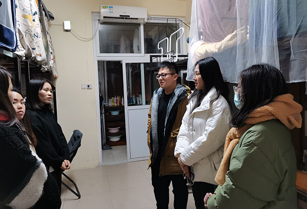 走访过程中,老师们还仔细检查了学生寝室的安全问题,对存在隐患的进行了现场整改。