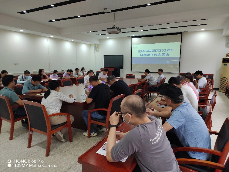 9月20日下午,生命科学学院在8C206会议室召开了学院2022年秋季学期班导师工作布置会,学院党委书记谢岚、党委副书记邵国良及全体班导师参加会议。