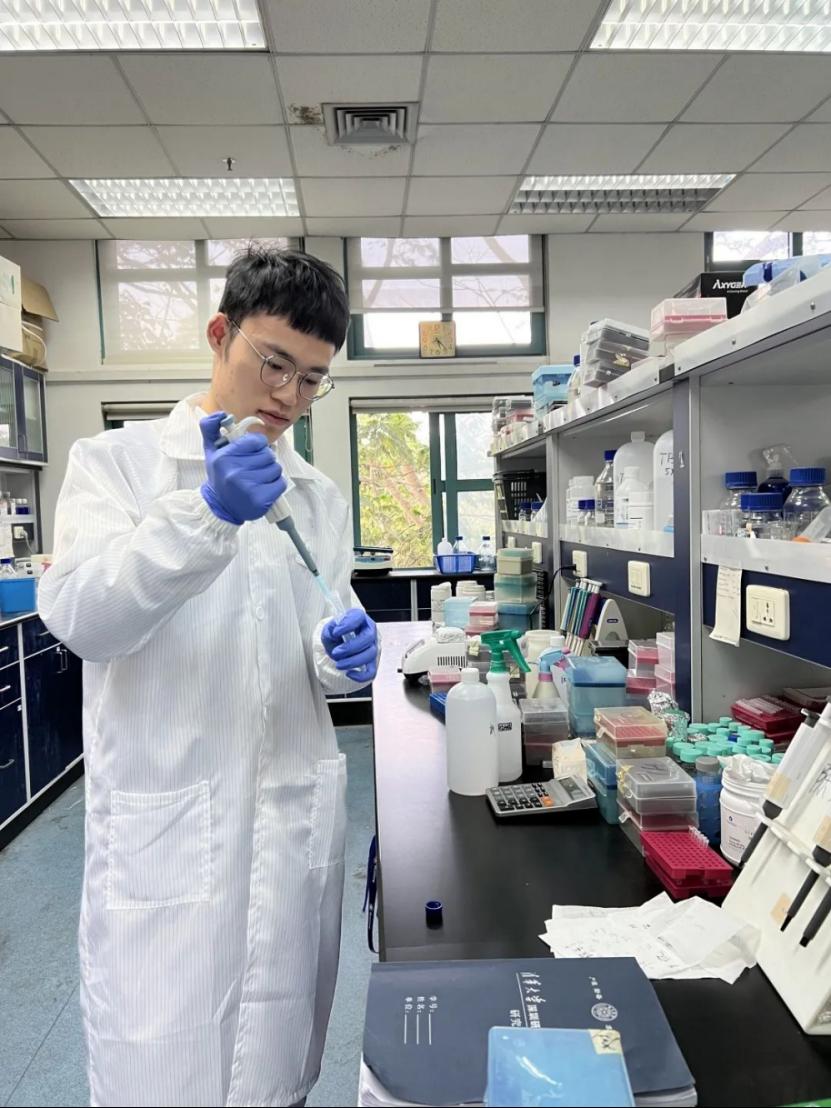 他给自己定下了两点要求:一是提高自己的成绩,这一点尤为重要;二是积极参与生物方面的竞赛和进入老师实验室学习,以此提高自己的实操能力。