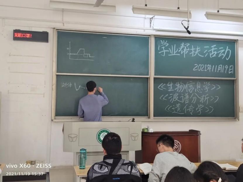 学习与竞赛之余,李沅恒也担任了班级的学习委员以及生命科学学院导生团队的成员。李沅恒积极组织班级内开展“学业帮扶”活动,降低了班级同学的挂科率;参与学院举办的“学业帮扶”活动,帮助多人提高学习成绩。李沅恒认为教学相长,通过把自己掌握的知识清楚地讲授出,让别人能听懂,在跟别人讲解题的过程中,他对知识的理解会更加深入,对知识的记忆也会更加牢固。