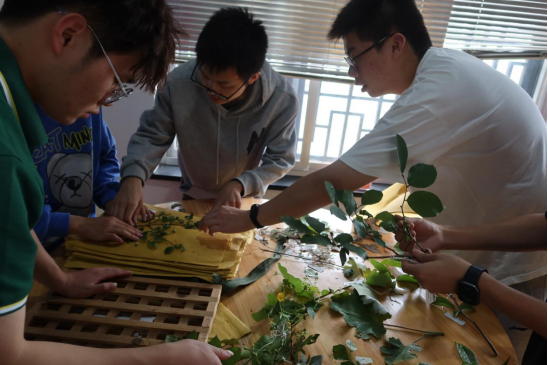 植物标本:每组同学分工合作,对采集的植物标本进行编号、修剪、舒展枝叶、放进吸水纸中,再用标本夹压制,使植物脱水干燥成形。直到植株和枝叶干燥成型。每名同学挑选一种植物再固定到白色台纸,并粘贴植物详细信息的标签。