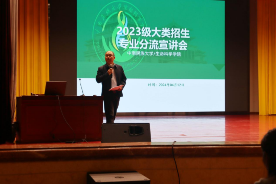 生命科学学院于4月12日在学术会堂开展专业分流宣讲会。本次大会旨在为学生提供专业选择的指导和职业发展的启示,为他们在日益多元化的就业市场中定位自我、规划未来道路。学院领导、各专业负责人以及23级全体学生参会。
