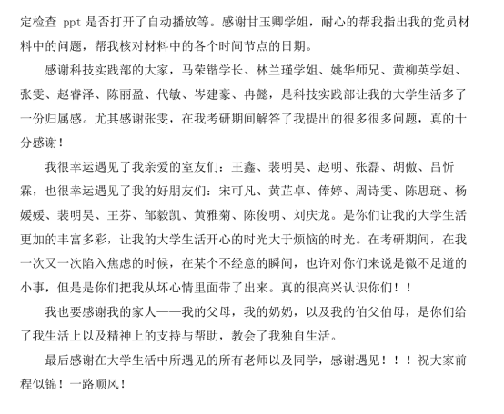 最后感谢在大学生活中所遇见的所有老师以及同学,感谢遇见!祝大家前程似锦!一路顺风!