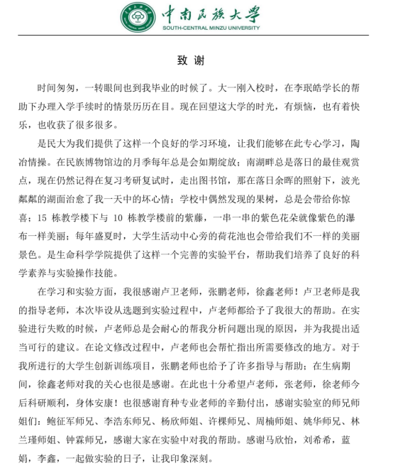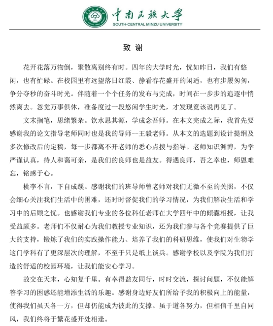 在民大的这四年时光里,我获得了很多,不仅仅是理论知识,还有实验技能,甚至是生活技能都得到了提升,同时我也遇见了真挚的友情,收获了师生情。