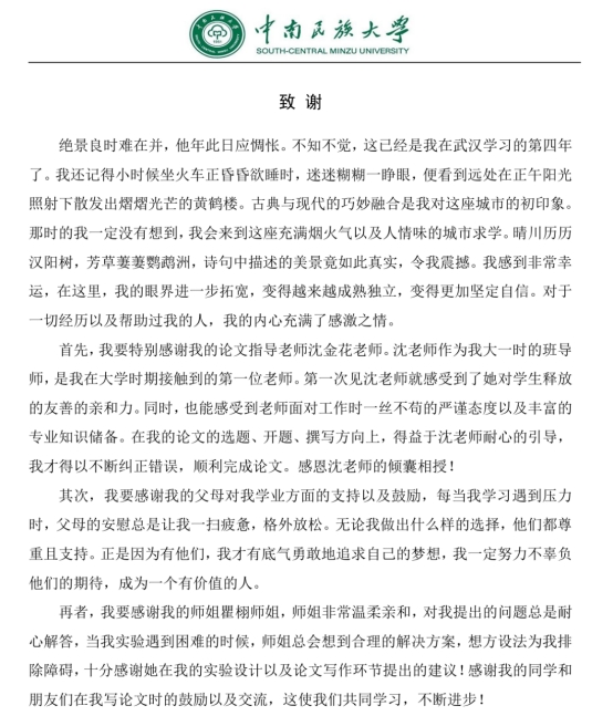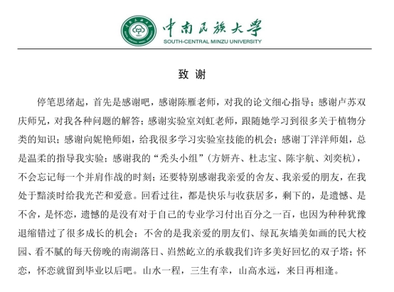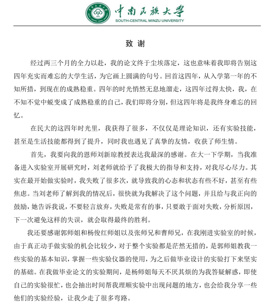 真挚的论文致谢
