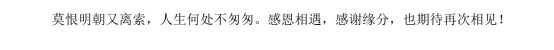 莫恨明朝又离索,人生何处不匆匆。感恩相遇,感谢缘分,也期待再次相见!