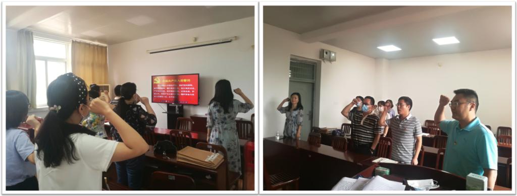 然后,李刚同志以《党史上的入党誓词演变》为题讲授专题党课,细致讲解了入党誓词产生的背景以及数次修改的时间与原因,领悟了党所处的历史时期和承担的历史任务决定了入党誓词的内容。随后全体党员面向党旗,重温入党誓词,集体进行了庄严的宣誓。宣誓结束后,党员同志逐一缴纳6月份党费。