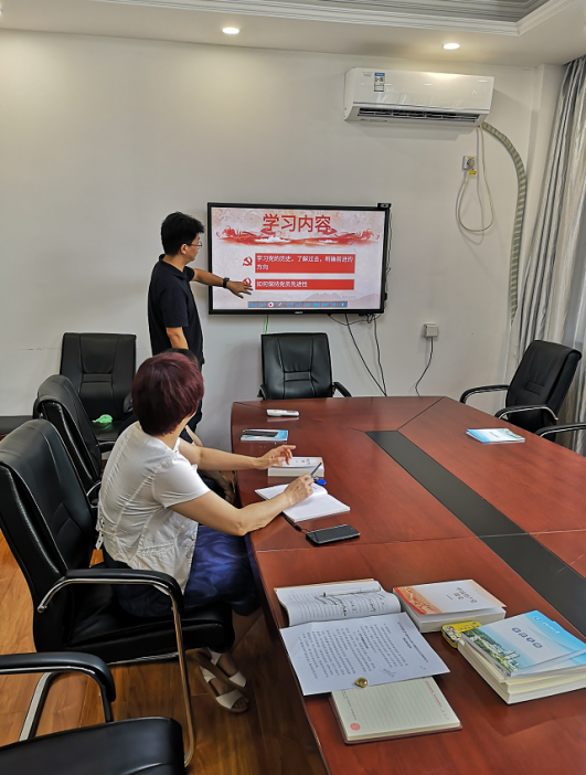 会议伊始,全体党员同志集体重温入党誓词并诵读党章。毕达宇同志先简要的对本次党史学习教育专题组织生活会的内容进行了介绍,并对近期一段时间支部党员党史学习教育的进展进行了总结,对支部党员认真严肃的学习态度,学习过程中的深入思考和反思给予了充分的肯定,同时也指出支部党员同志应当继续加强党史理论学习,对标上级党组织的各项要求,逐条对照,对自身政治学习持续高标准、严要求。