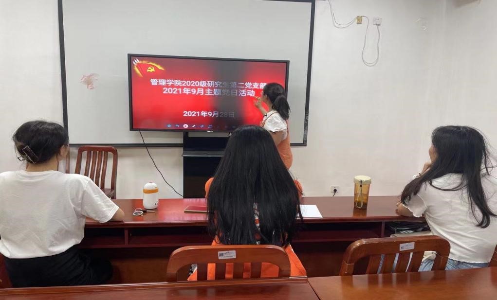 2021年9月28日星期二,管理学院2020级研究生第二党支部全体同志在管理学院310会议室开展了9月主题党日活动。本次党日会议围绕“感悟民族工作百年光辉历程,铸牢中华民族共同体意识”主题进行,会上同志们一起观看党中央的系列讲话视频,学习习近平总书记的重要讲话精神。