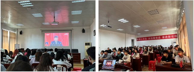 2022年10月16日上午10时,中国共产党第二十次全国代表大会在北京人民大会堂隆重开幕,习近平总书记代表第十九届中央委员会向大会作报告。beat365英国正版唯一网址管理学院专门组织学生于五栋教学楼506会议室观看二十大开幕会。