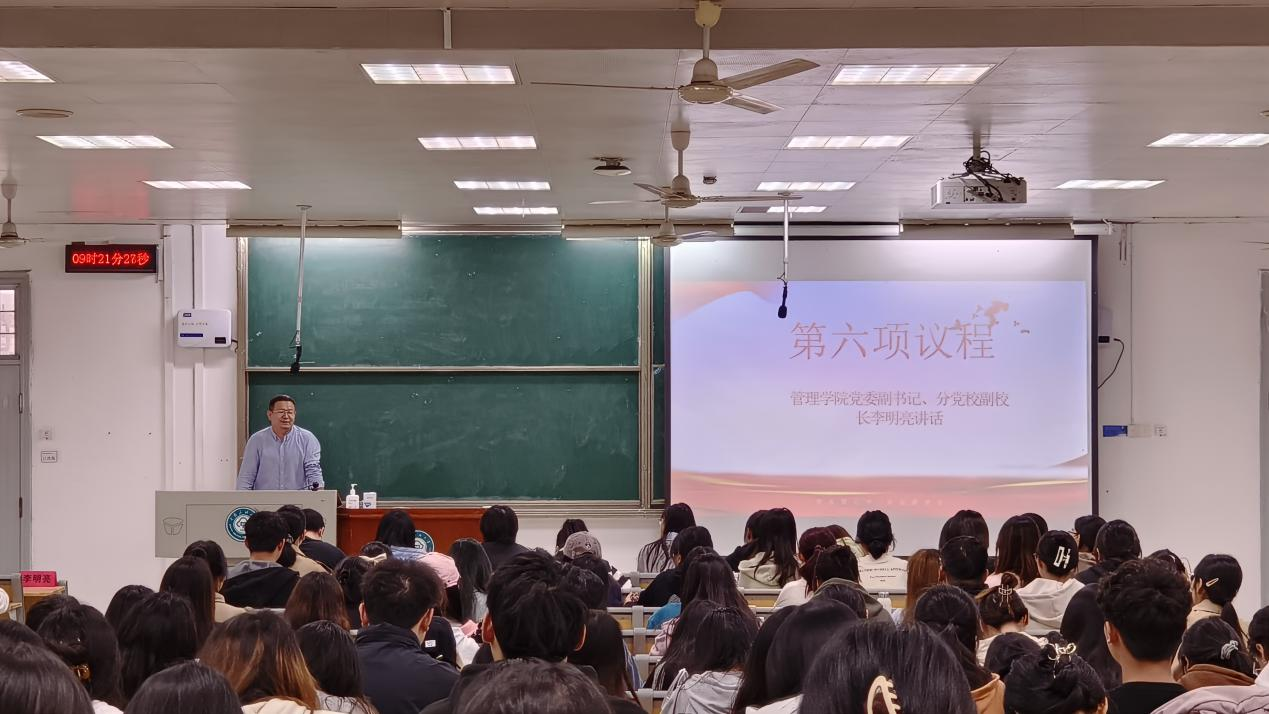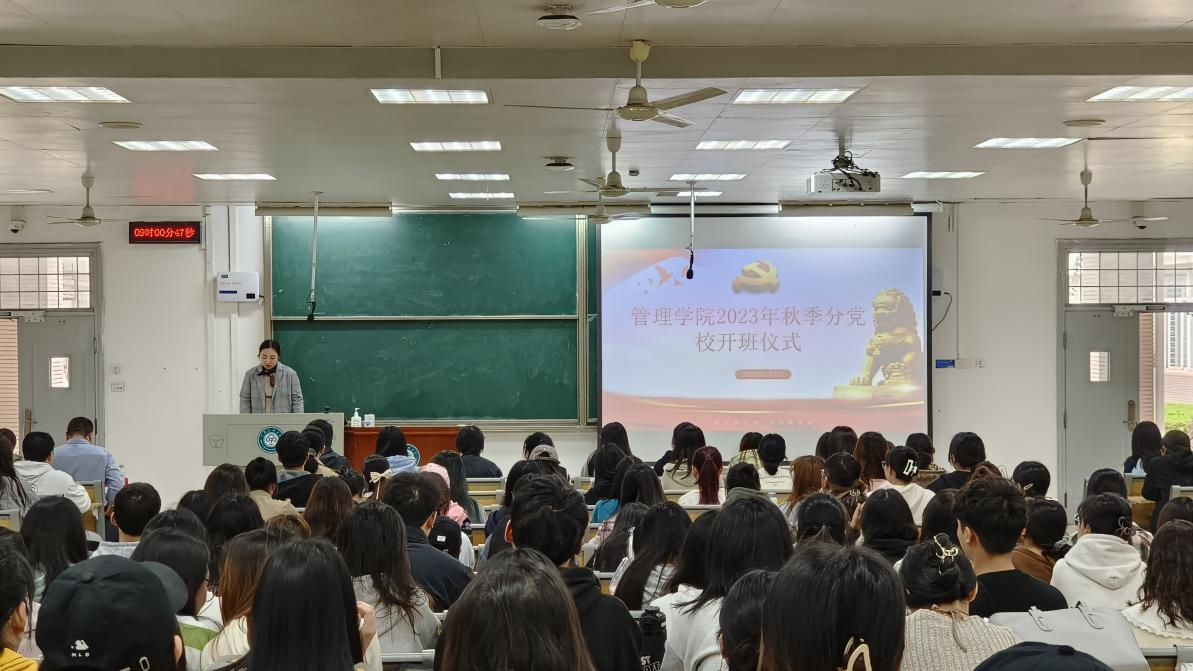 11月4日上午,管理学院2023年秋季分党校开班仪式在15栋教学楼105教室举行。学院党委副书记、分党校副校长李明亮出席开班仪式,2022级辅导员曾城皓、第96期入党积极分子全体学员、第15期发展对象全体学员及第16期预备党员全体学员参加开班仪式。开班仪式由2021级辅导员田尧主持。