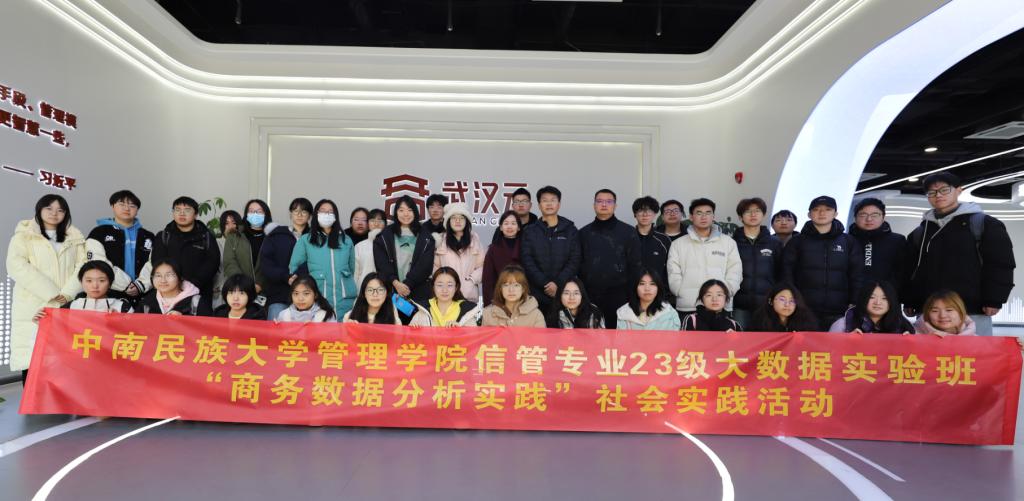 为加深同学们对人工智能与大数据在实际产业应用中的认知和理解,近距离感受数字经济的蓬勃发展态势,拓宽专业视野,2024年12月13日,管理学院信管专业2023大数据实验班的全体同学在杨单老师的带领下赴武汉云数字经济总部参观学习。