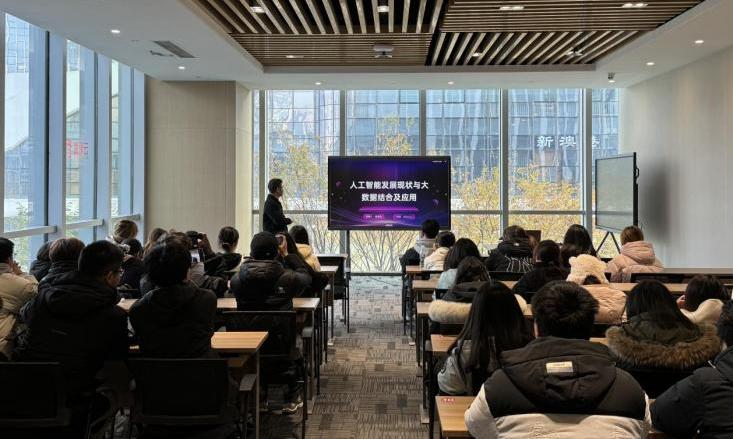 师生前往报告厅参加了“人工智能发展现状与大数据结合及应用”专业认知讲座。本次讲座内容涵盖了AI人工智能发展现状、人工智能与大数据的结合、经典案例、技术框架介绍这四个方向,企业专家通过丰富的经典案例结合浓厚的专业知识,比如人工智能和大数据技术在智慧城市建设、企业数字化运营、医疗健康管理等多个领域的实际应用场景,使同学们对大数据和人工智能行业有了更深入的了解。