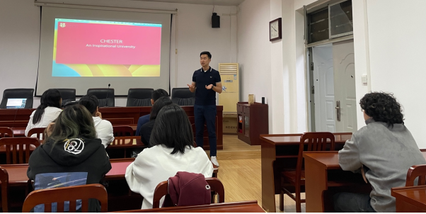 除了与我院领导会面外,切斯特大学武老师还为我院的本科与研究生们做了一场精彩的专题讲座,题目是“跨文化沟通在中英教育对比中的实战应用”。武老师从自身的经历出发,分享了他在中英两国教育体系中的感受和体会,以及如何有效地进行跨文化沟通和适应。武老师还介绍了切斯特大学的教育优势和特色,以及到切斯特大学进行访学和攻读硕士的相关事宜。讲座结束后,武老师还耐心地回答了同学们提出的各种问题。